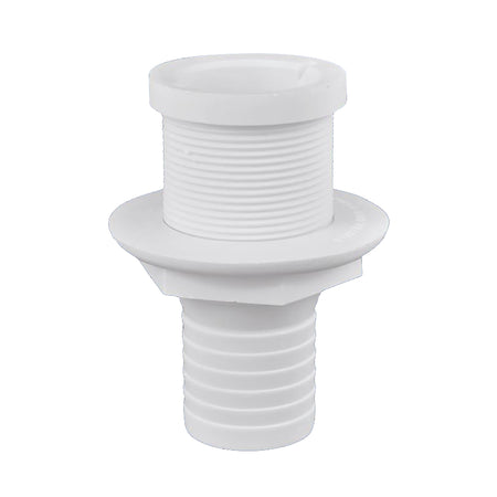 For use with 1-1/2" I.D. hose as part of a self-bailing cockpit system. Features short stem and narrow flange for installing through cockpits. Polypropylene construction.