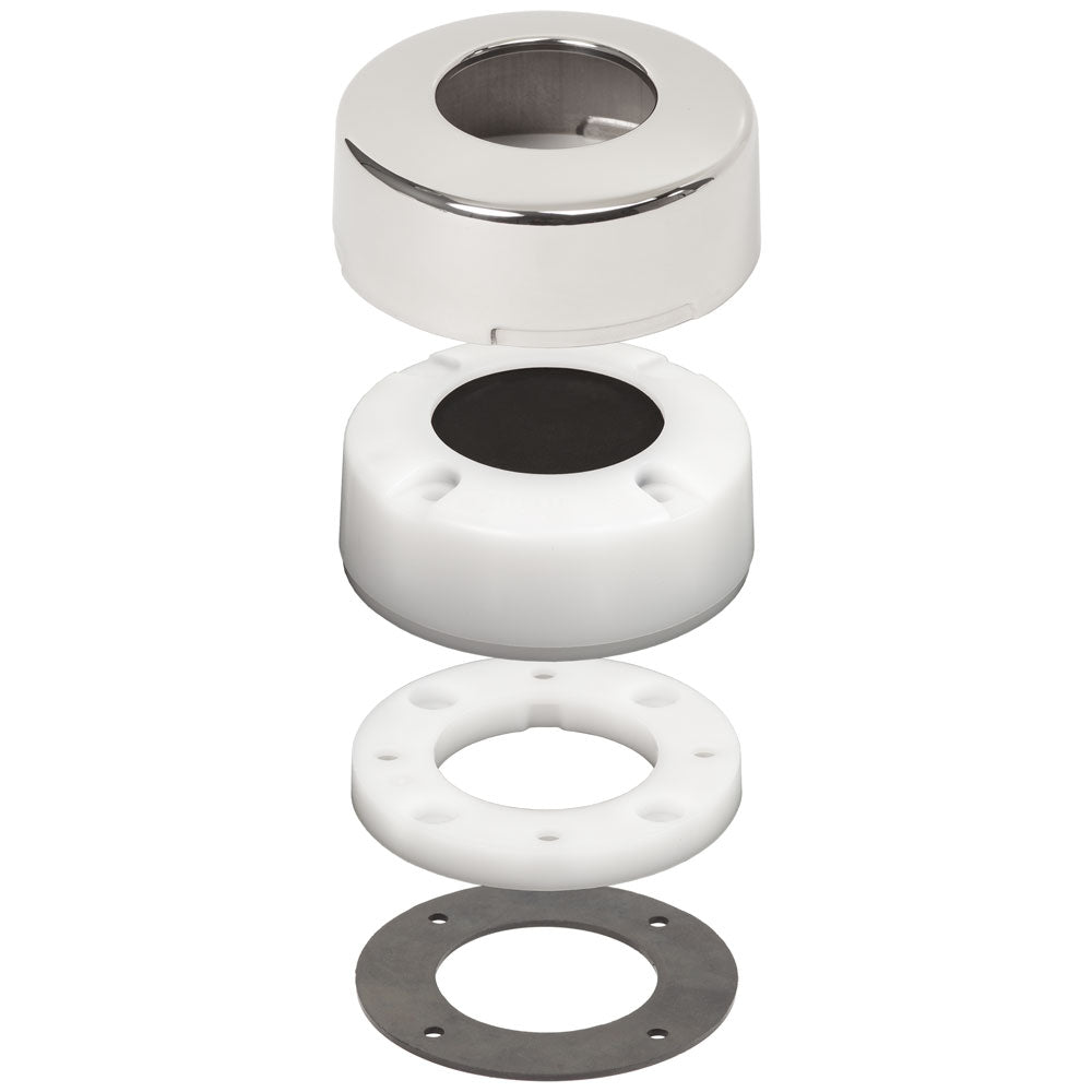 • A polished stainless steel dress cap conceals mounting hardware, matches other deck hardware and offers protection from UV