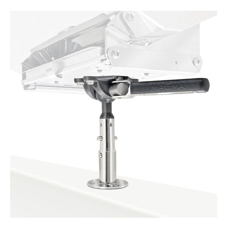 This 18-8 mirror polished stainless steel and hard anodized aluminum mount features Magma's LeveLock all-angle adjustable locking mount, a push-button locking pin, and a water drainage hole in the side of the socket.
