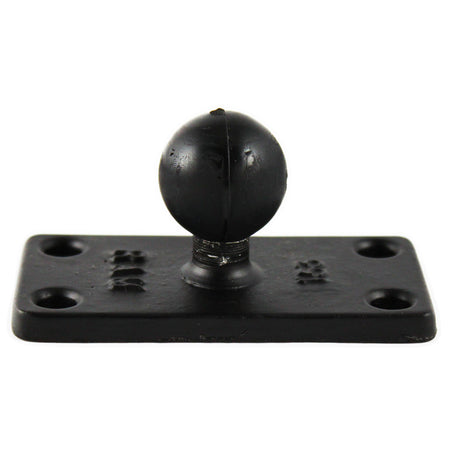 The RAM-B-202U-153 contains a 1" diameter rubber ball connected at right angles to a 1.5" x 3" rectangular base. This mount has pre-drilled holes at each corner of the base plate.