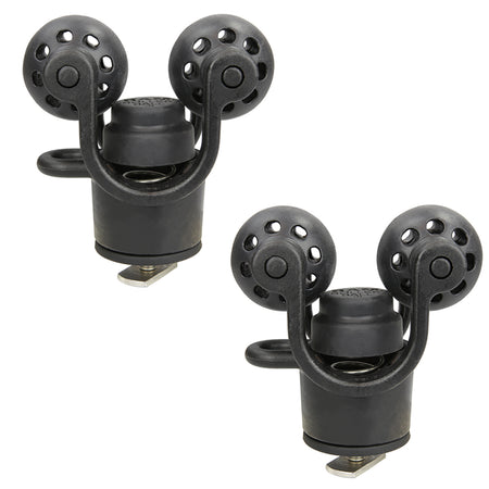With the 2-Pack RAM® Roller-Ball™ holder for tracks, easily secure your heavy-duty net, paddle, gaff hooks, stakeout / push poles, or BogaGrip®. Its three-point security design on each RAM® Roller-Ball™ means there are always three points of tension keeping your net, paddle or other items attached, while also ensuring quiet placement and removal. The T-Bolt adapter is compatible with the RAM® Tough-Track™ and most other kayak track systems, and holds paddles and poles 1” - 1 5/16” in diameter.