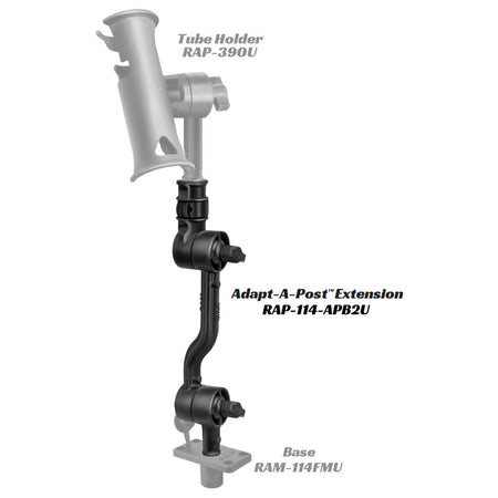 Get your fishing rod closer to you, closer to the action, or simply out of the way with this latest extension from RAM. Rugged, high strength composite construction ensures years of performance on the water. The RAM Adjustable Adapt-A-Post Extension Arm will lift your RAM-ROD holder up off of the deck and enable ideal positioning in tight spaces such as on kayaks. The included quick release female post and spline adaptor are simple to engage and release; this making it easy to move your mount to various positions on your kayak, or for stowage. Compatible with the most popular RAM fishing rod holders and bases, this extension option is a simple add-on that is sure to add more fun and comfort to your day on the water.