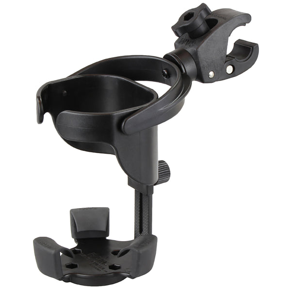 Designed for bigger insulated cups, plastic water bottles or even your reliable steel coffee cup, the Level Cup XL keeps your drink upright, regardless of the conditions. This kit includes a Level Cup XL with an integrated Tough-Claw™. The Tough-Claw allows for tool-less removal and adjustments on any rail or flat bar. The Tough-Claw can attach to any surface from flat through a 1.5” railing. The oversized opening cradles the biggest of gulps and the adjustable bottom piece moves up and down to accommodate taller cups. The rubber feet flex to fit various sized cups as well. RAM® Mounts has refined the self-leveling action to keep your cups full.