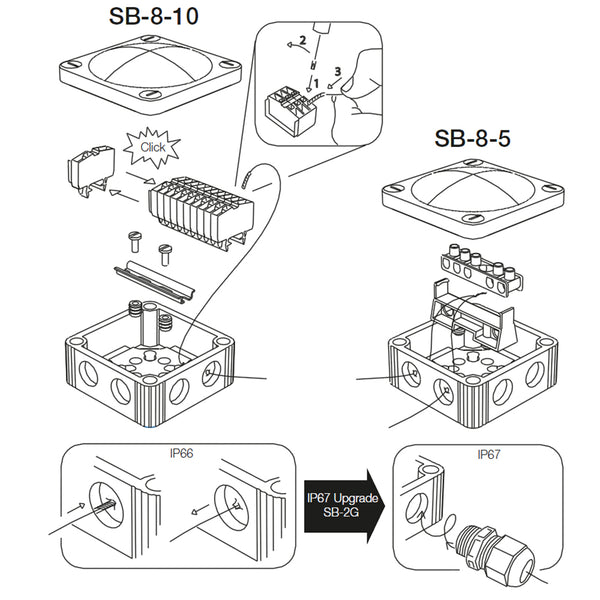 - Upgradable to IP68 with use of SB-2G Cable Seals (sold separately)