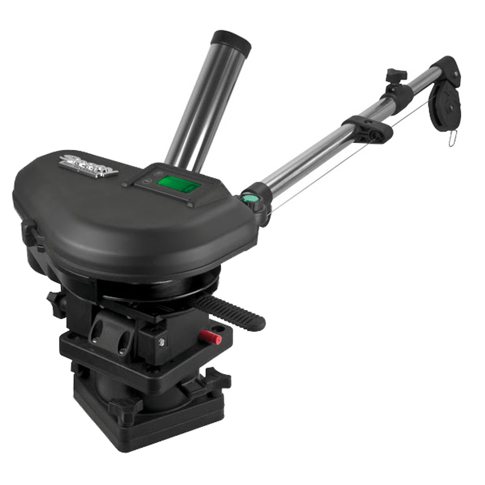 The High Performance Downrigger features a new illuminated digital line counter as well as the sleek new Rocket Launcher rod holder. Pre-spooled with the HP stainless steel downrigger wire, the HP models have unbeatle pulling power lifting 20 lb. weights with ease at 260 ft. / min, and 10 lb. weights at 312 ft. / min.