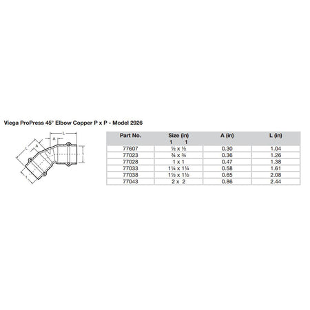 Viega ProPress 3/4" - 45 Copper Elbow - Double Press Connection - Smart Connect Technology [77023]